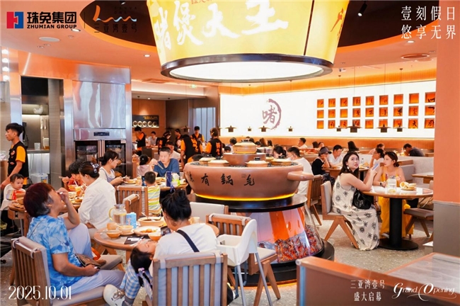 开业现场人潮涌动,气氛热烈。开业仅 5 小时客流量即突破 5 万人次,新增会员超 3 万,推出的 9.9 元早鸟畅吃券与 150 元团 300 元零售悠享券一经上线便迅速售罄,火热态势直观展现项目强大市场吸引力,也为三亚打造国际旅游消费中心核心区写下生动注脚。